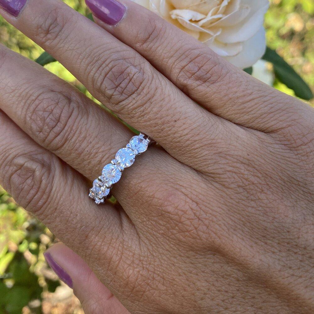 Introducing the Lumeniri Diamonds Classic Eternity Band. This is a stunning full diamond eternity band featuring dazzling round stones that glisten and sparkle as they catch the light. Wear it alone or with an engagement ring.