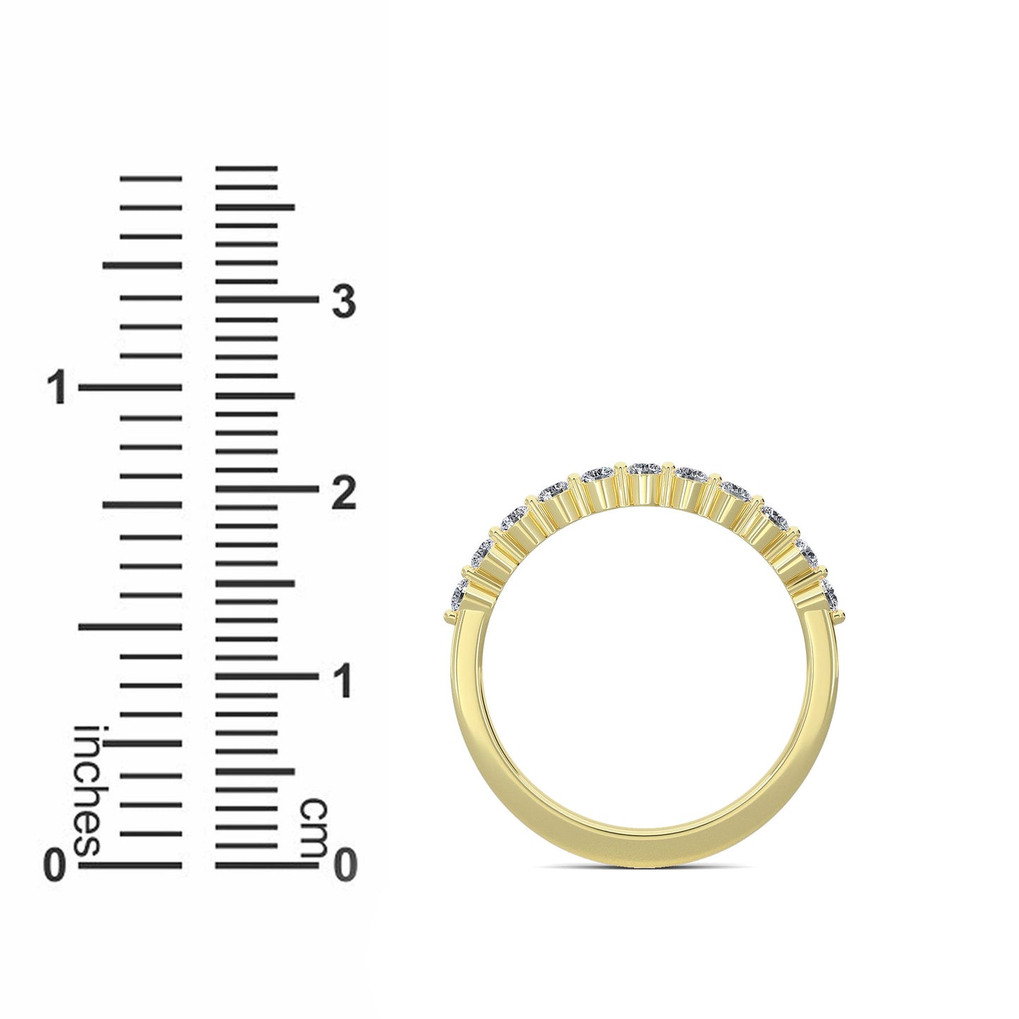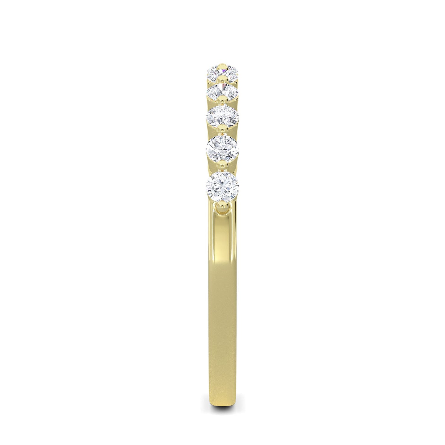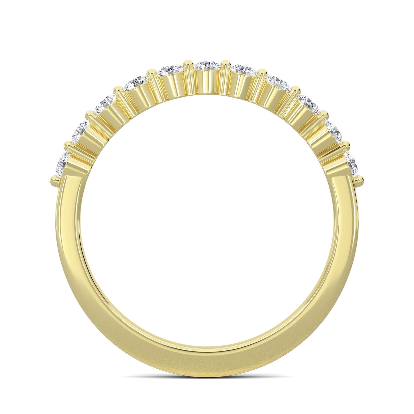 This exquisite half-eternity band ring features 11 round lab-grown diamonds, each measuring 1.9mm, set meticulously in 14K Yellow Gold. This piece exemplifies our commitment to authenticity and eco-conscious craftsmanship.