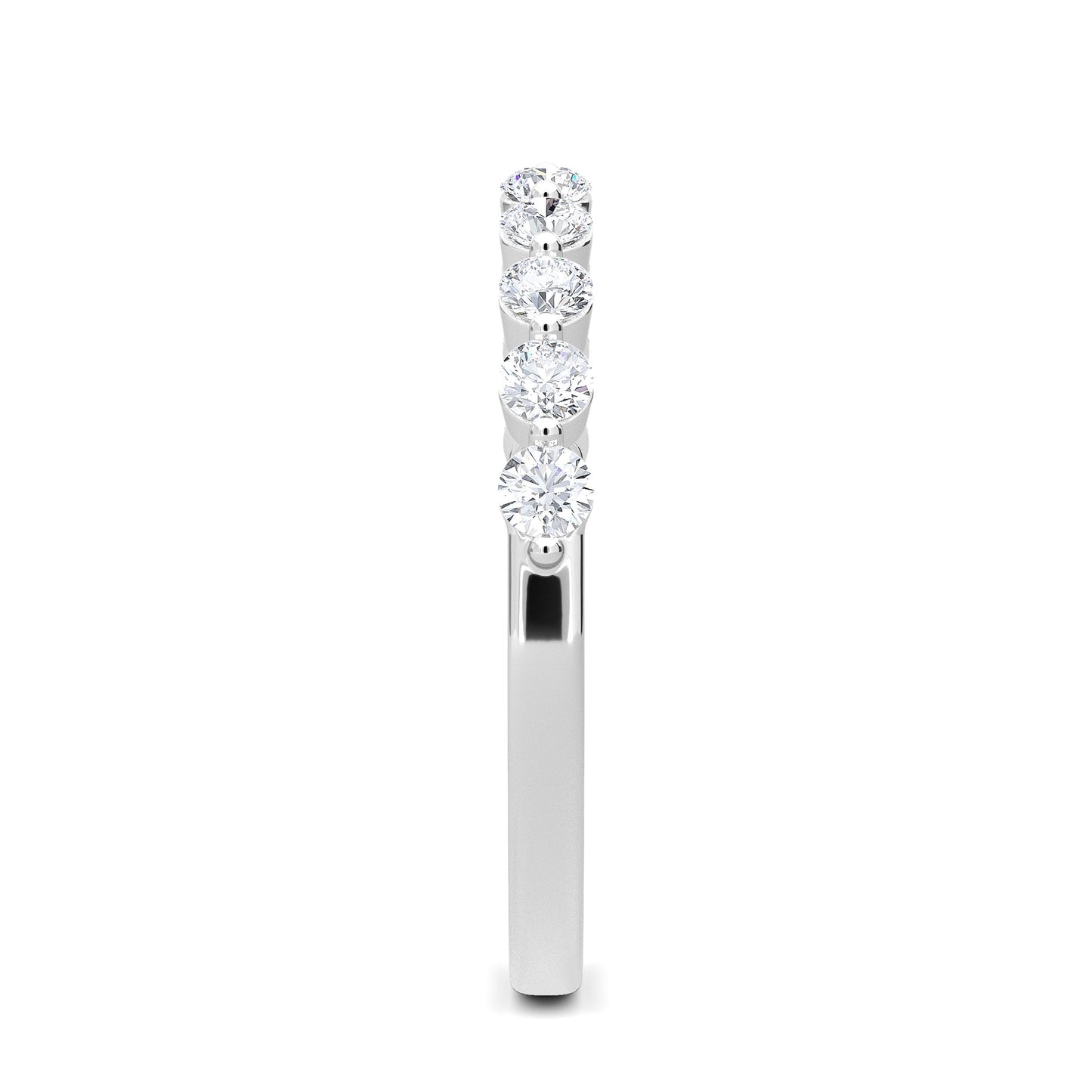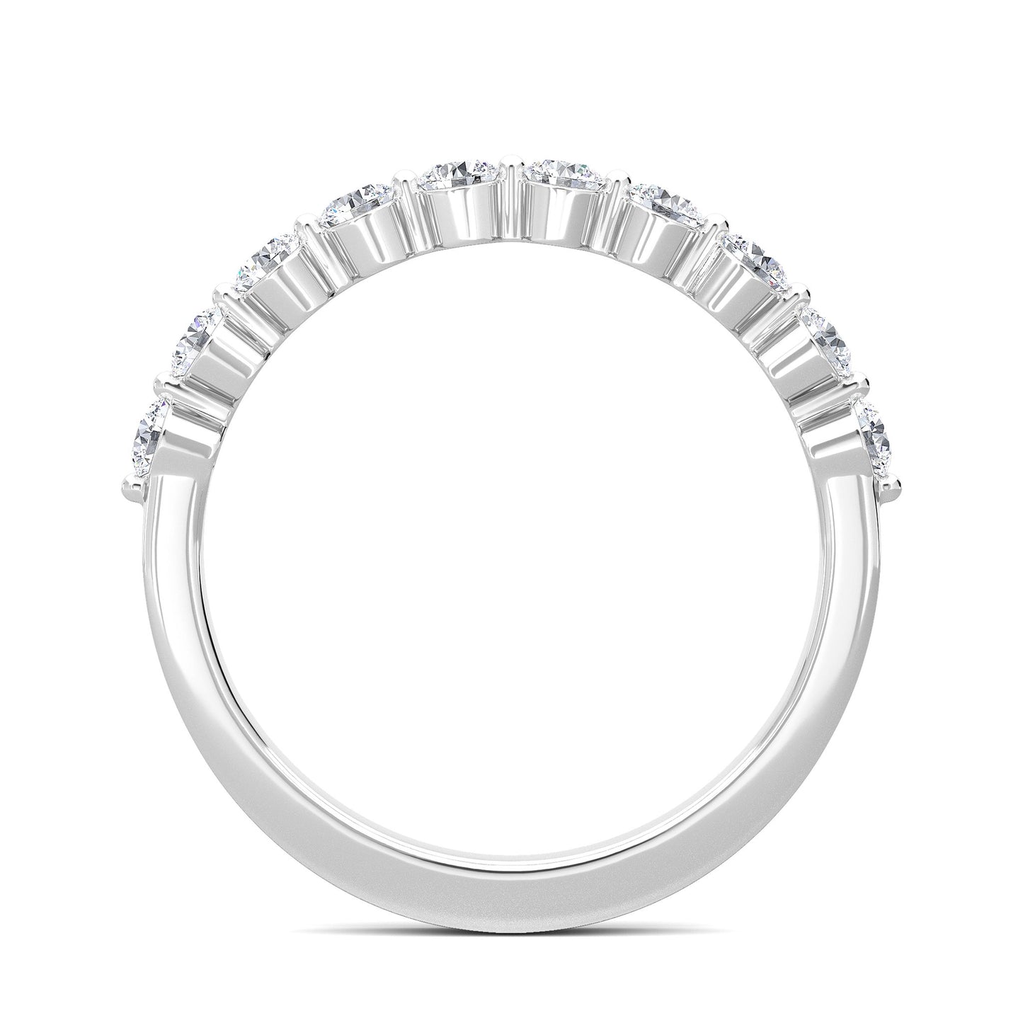 This exquisite half-eternity band ring features 10 round lab-grown diamonds, each measuring 2.3mm, set meticulously in 14K White Gold. This piece exemplifies our commitment to authenticity and eco-conscious craftsmanship.