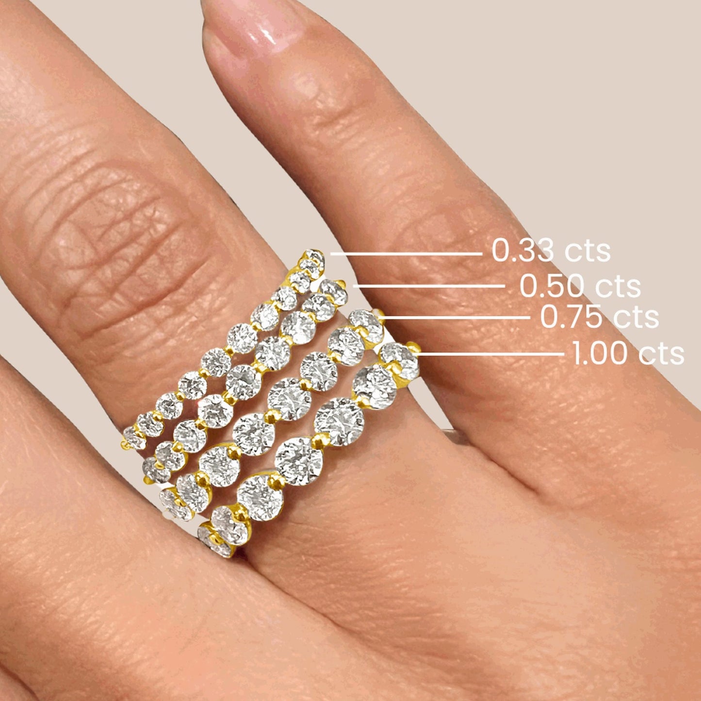 Once you have selected your favorite ring and the diamond of your choice, we will send you a ring sizer via mail to confirm the ring size on your order. We want to make sure we get a perfect fit. Please note that for eternity bands, we require you to visit a jeweler and have your finger properly sized as eternity bands cannot be adjusted for size once they are made.