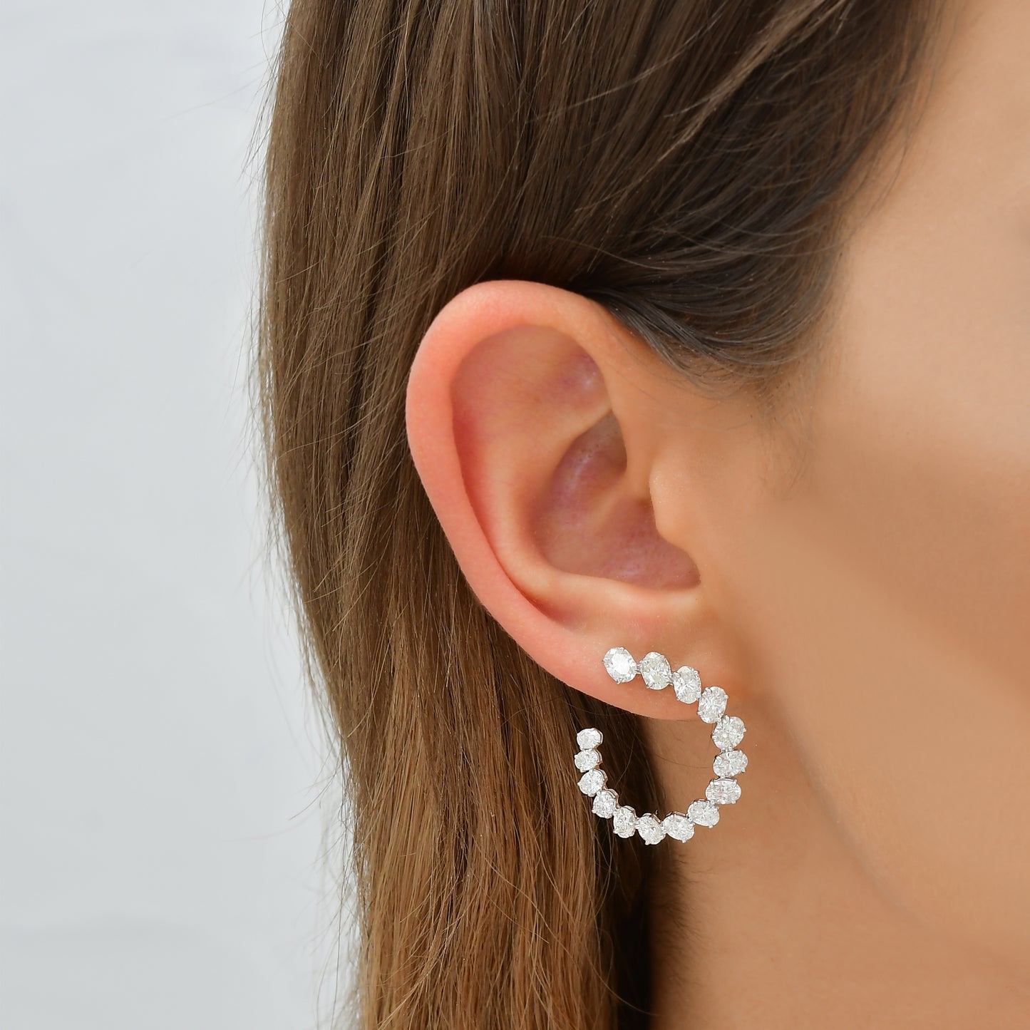 These handmade earrings are showstoppers. The timeless profile curve hoop design features top-quality lab diamonds by Lumeniri. Lumeniri exists to offer real, sustainably created high-design diamond jewelry to a hopeful generation that believes that through science and human ingenuity, we can (and will) do better. From our bridal and wedding jewelry to our fashion collection, our master goldsmiths, diamond setters, and designers strive to custom-create your dream diamond jewelry.