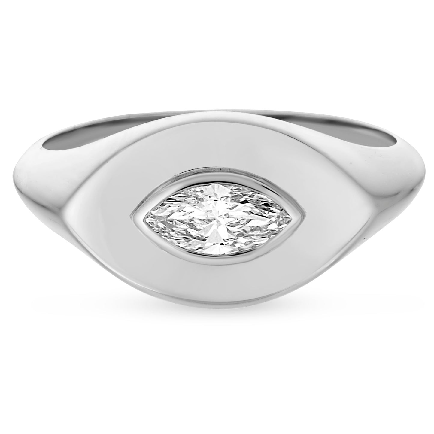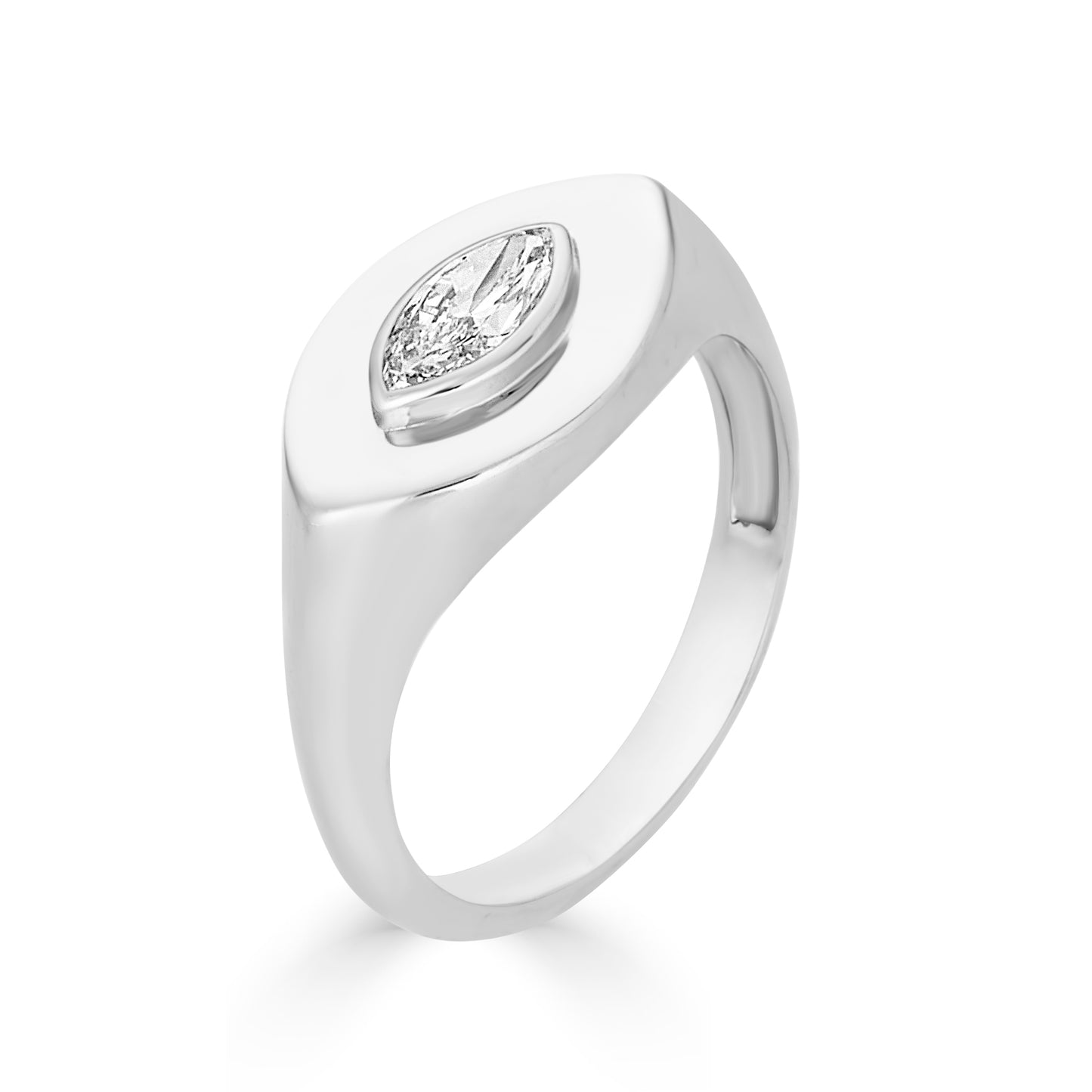Inspired by the concept of safeguarding one's path, the Lito Marquise Protective Eye Signet Ring is a bold statement of strength and vision. Set in 14K Yellow Gold, this unique ring features a 0.3ct marquise-shaped lab grown diamond encircled by intricate detailing to emphasize its protective symbolism. The marquise cut enhances the diamond's brilliance, reflecting light from every angle, while the solid yellow gold setting provides a sleek, enduring foundation. This piece is designed for those who value both sophistication and the power of symbolism in their jewelry.