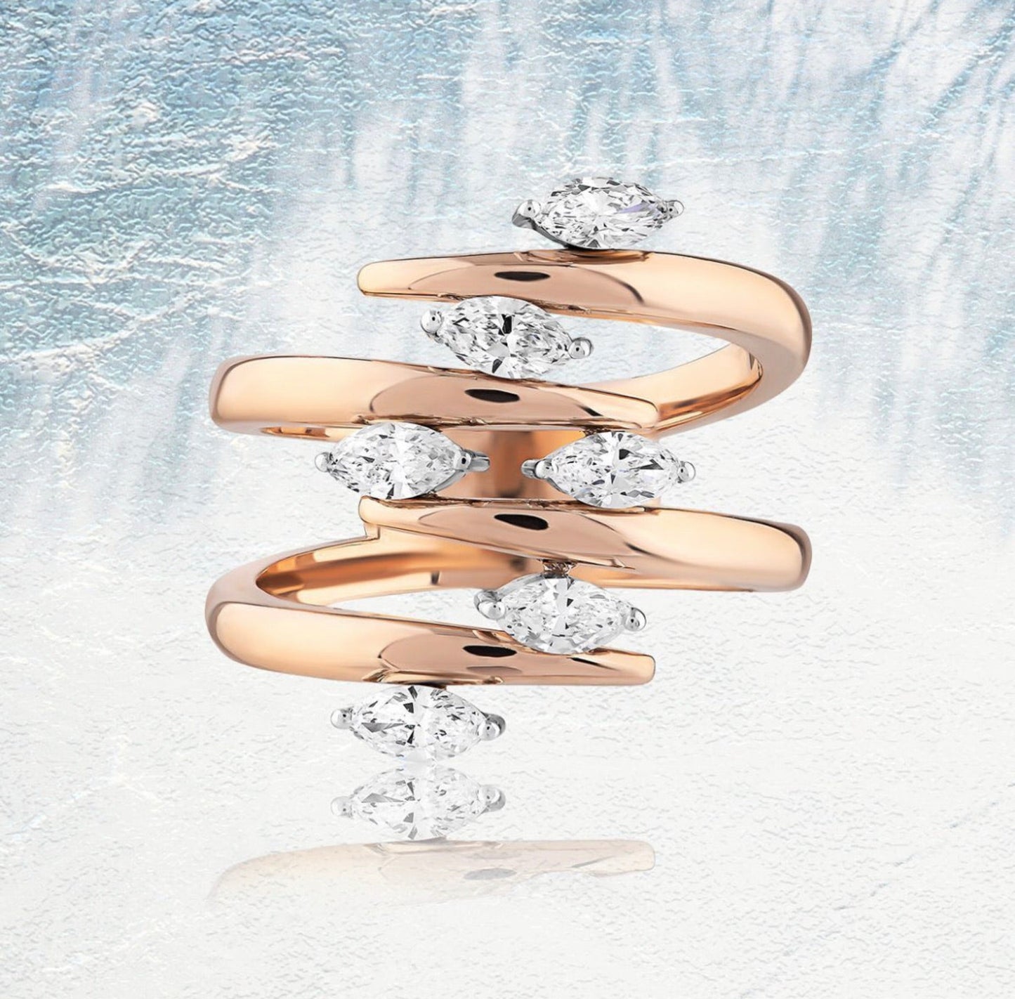 The handmade cocktail ring with a triple coil wrap design and marquis diamond accents (0.82 total carats) is sleek, chic, and modern featuring top-quality lab diamonds by Lumeniri. Lumeniri exists to offer real, sustainably created high-design diamond jewelry to a hopeful generation that believes that through science and human ingenuity, we can (and will) do better. From our bridal and wedding jewelry to our fashion collection, our master goldsmiths, diamond setters, and designers strive to custom-create your dream diamond jewelry.