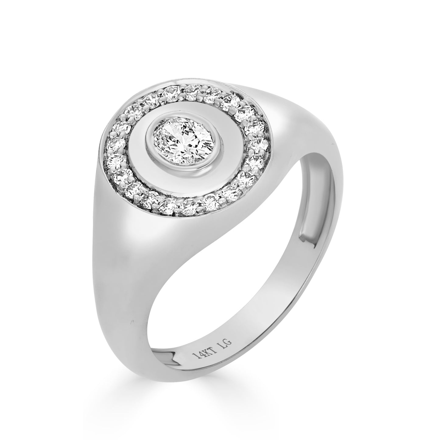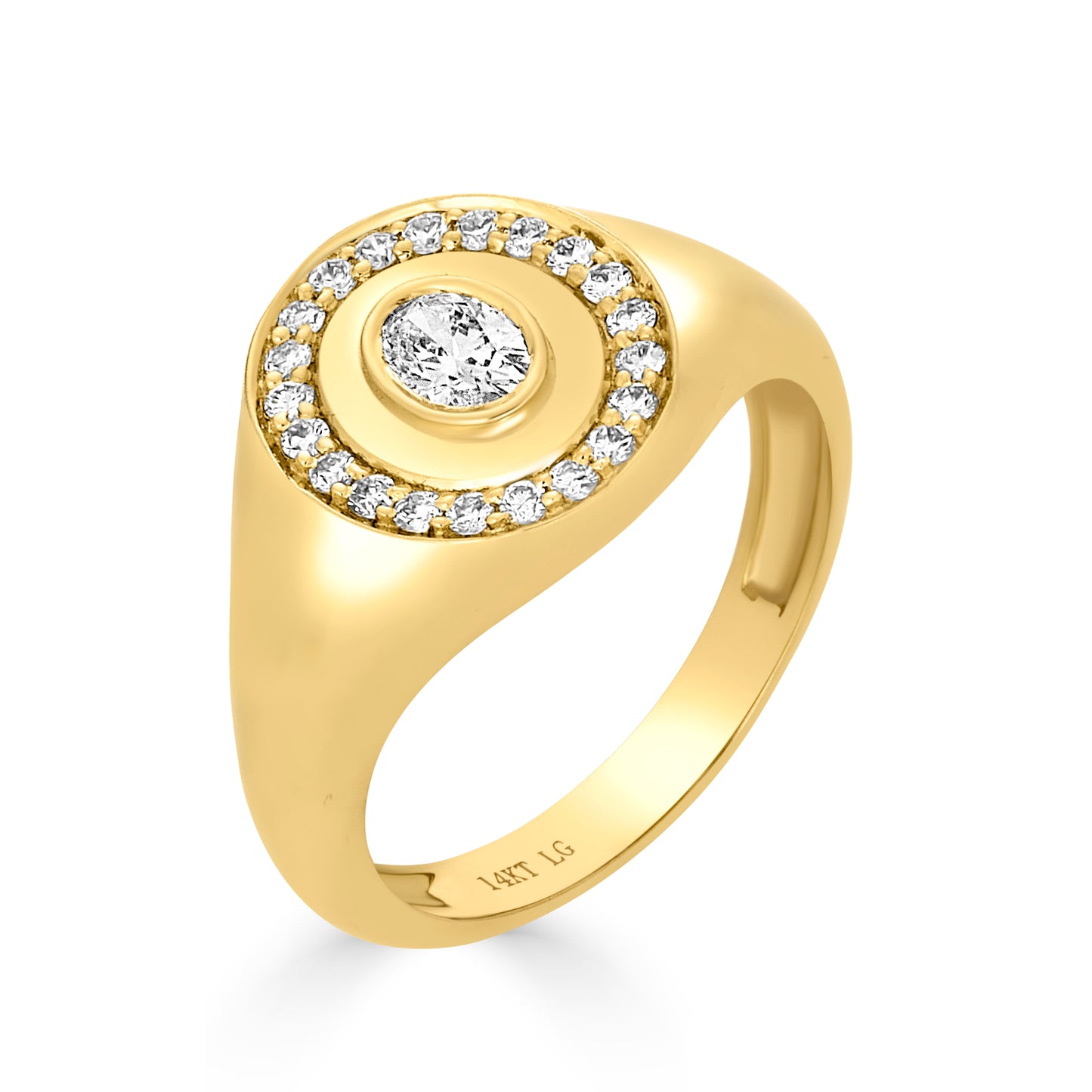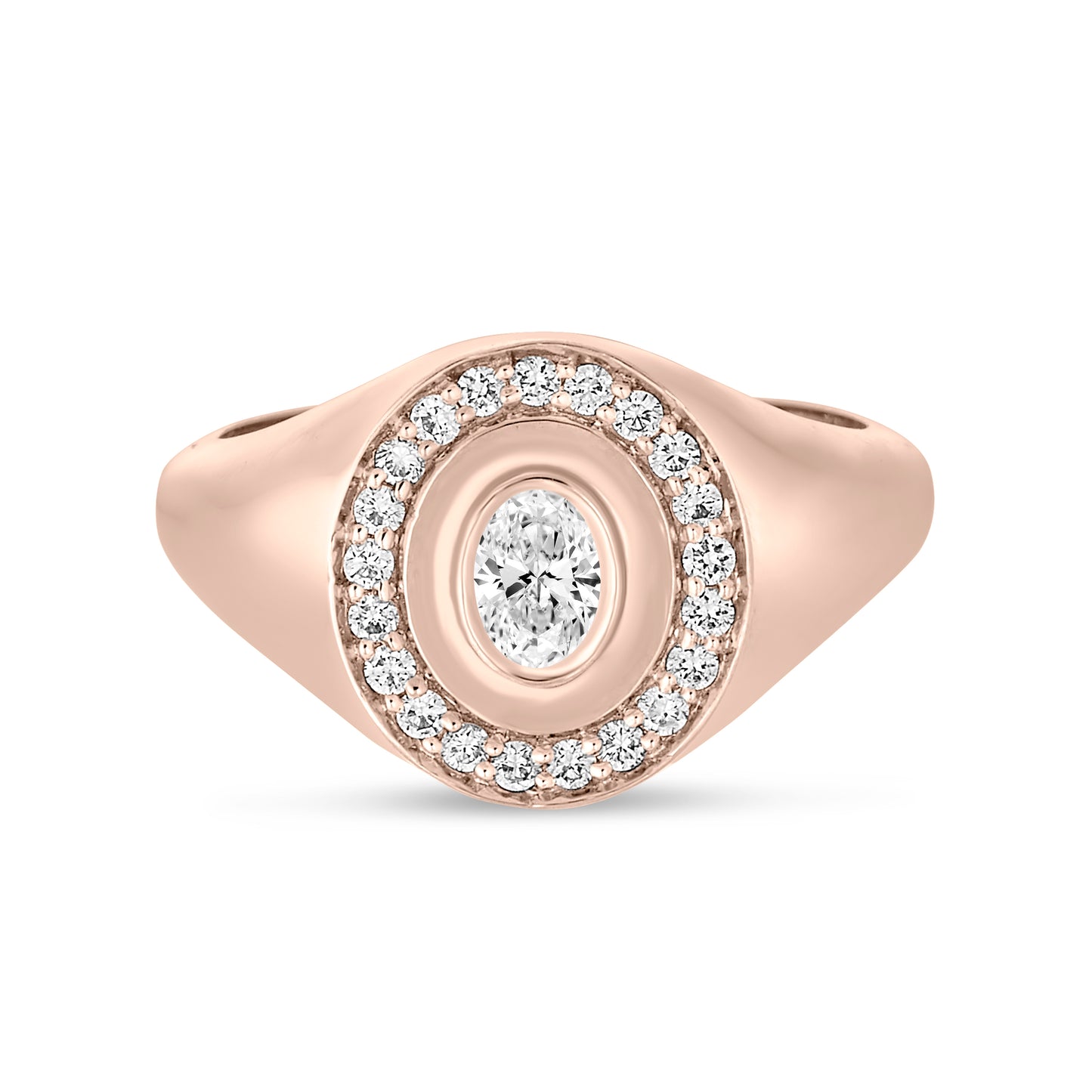 Introducing the Oran Signet Ring, a timeless piece crafted in luxurious 14K yellow gold with lab-grown diamonds. This stunning ring features a 0.42ctw design, with a brilliant oval center stone encircled by a radiant halo of diamonds. The Oran Signet Ring merges classic design with modern flair, making it a distinctive addition to any jewelry collection. Available in yellow, white, and rose gold, this versatile ring is perfect for those who appreciate refined style and sustainable luxury.