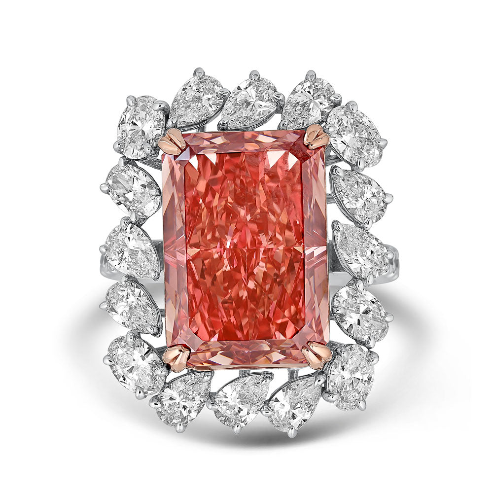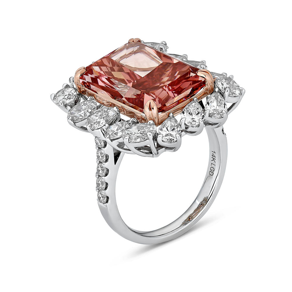 Add Radiant Cut Pink Diamond Cocktail Ring with Abstract Pear Halo to the cart