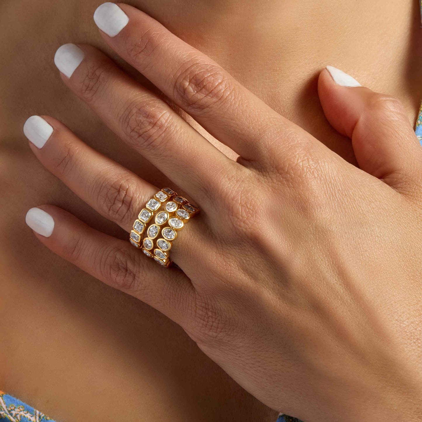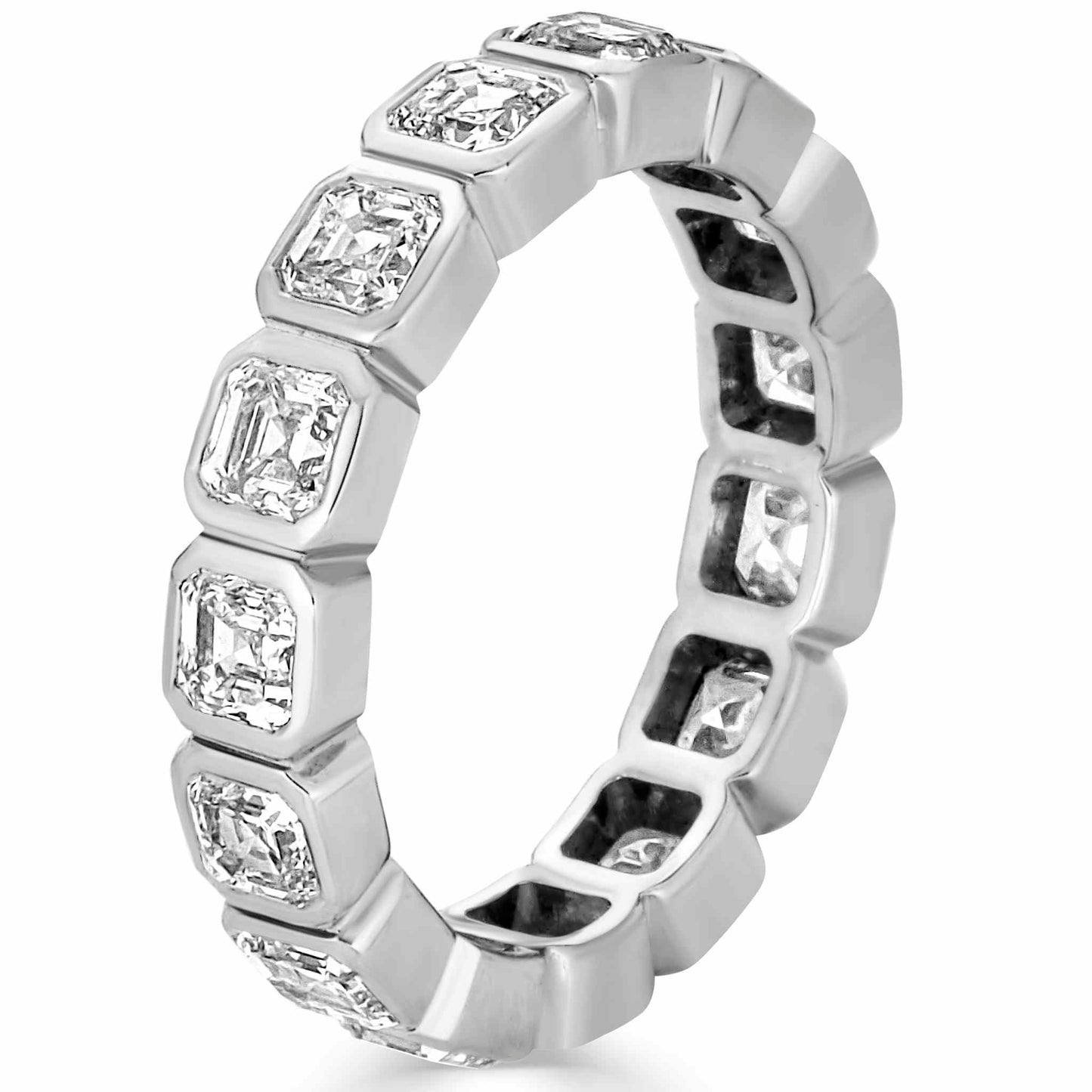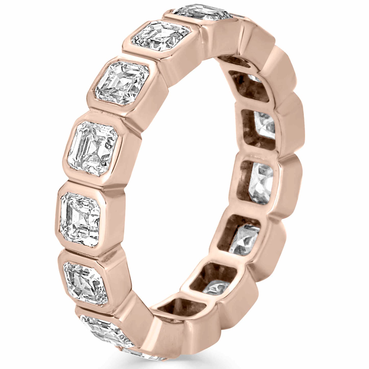 Introducing the Lumeniri Lucia Bezel Set Asscher Cut Eternity Band—a stunning piece that symbolizes everlasting love and commitment.