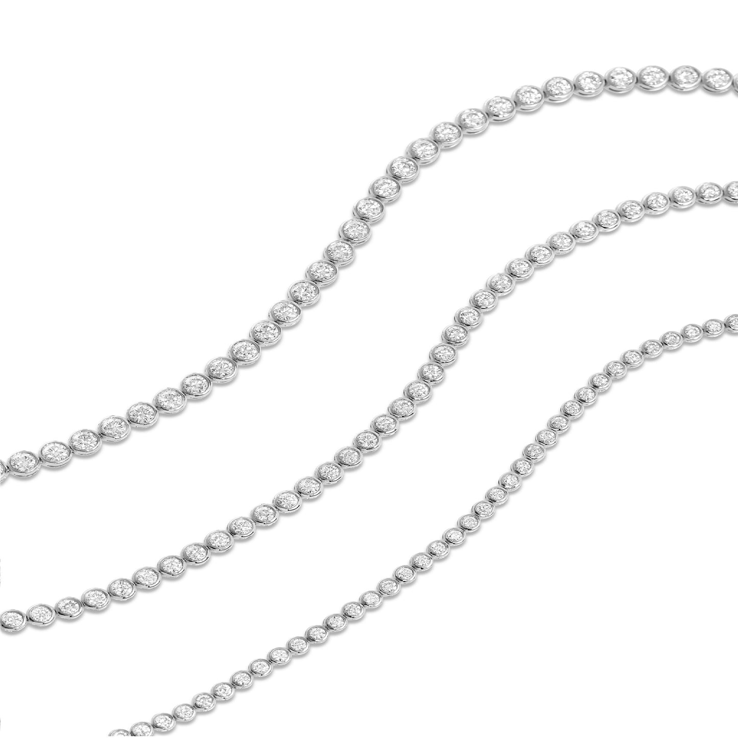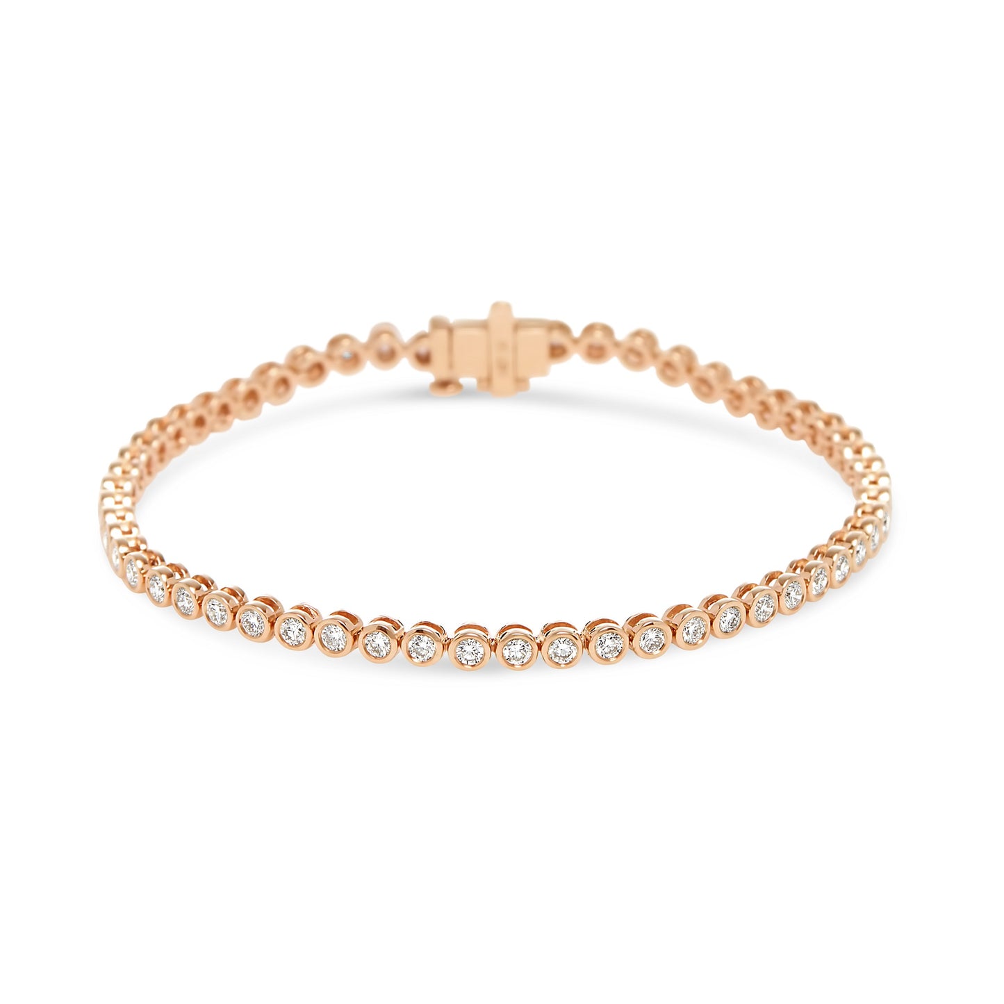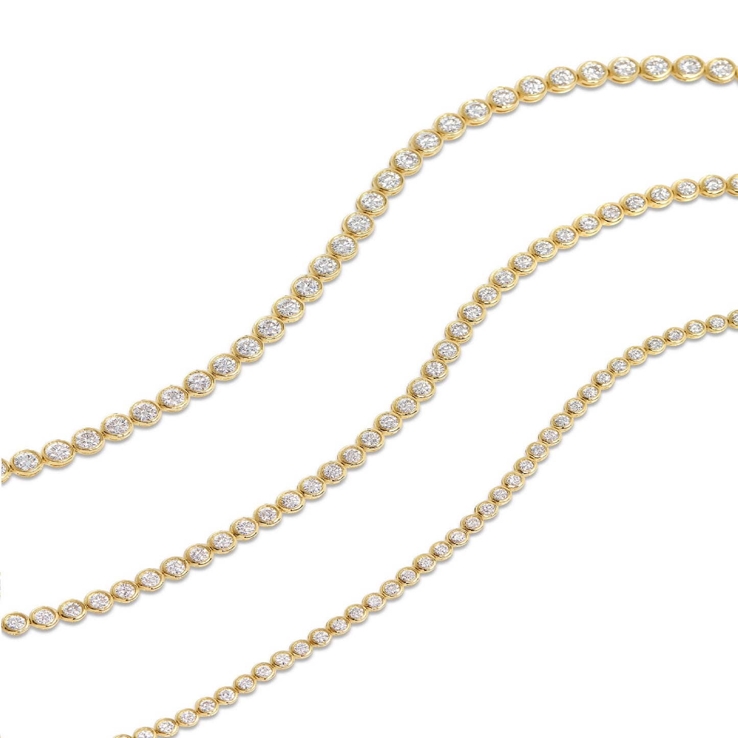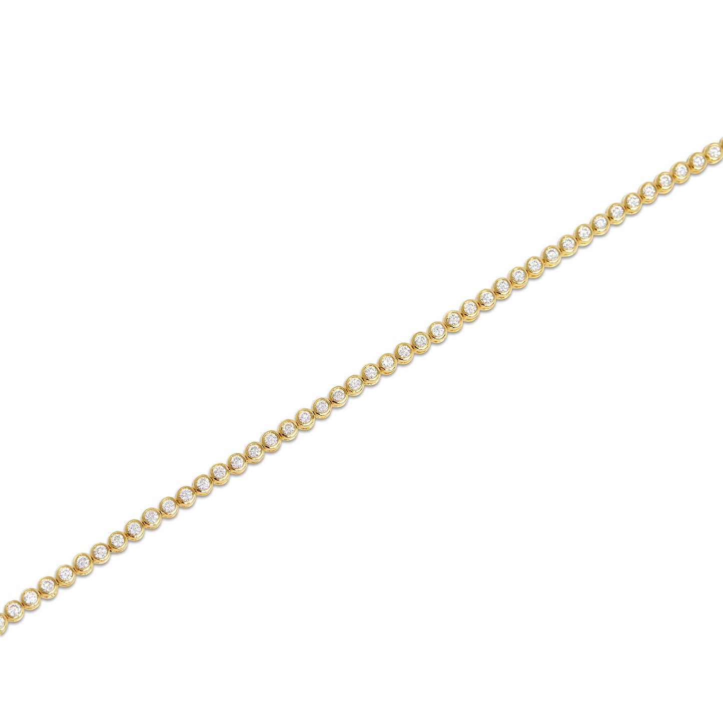 The Lucia Rounds Bezel Set Tennis Bracelet is a contemporary take on a timeless classic. Featuring 2.00ct of round lab grown diamonds, each securely encased in a bezel setting, this bracelet exudes understated elegance and brilliance. The fluid design ensures a seamless, comfortable fit, making it the perfect piece for everyday sophistication or a dazzling evening accent. Available in 3.00ct, 4.00ct, and 5.00ct variations, Lucia offers versatility to match your unique style.