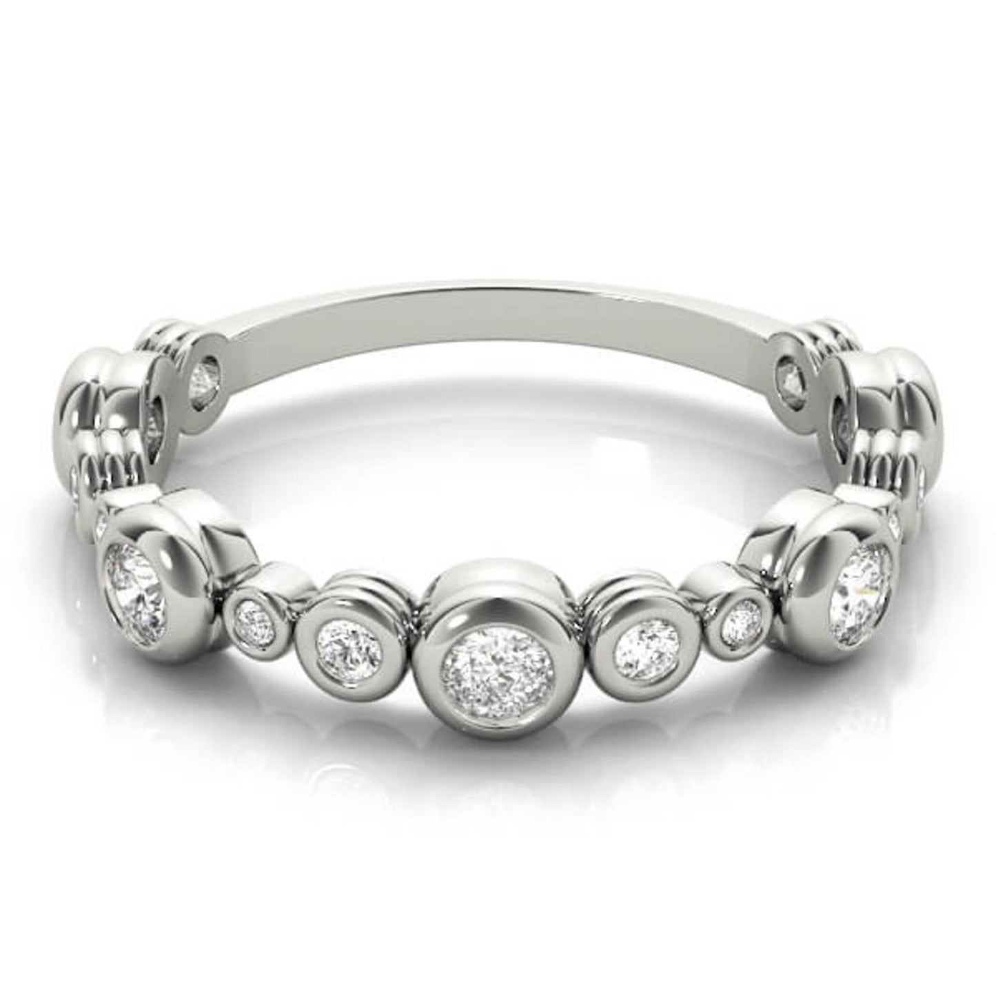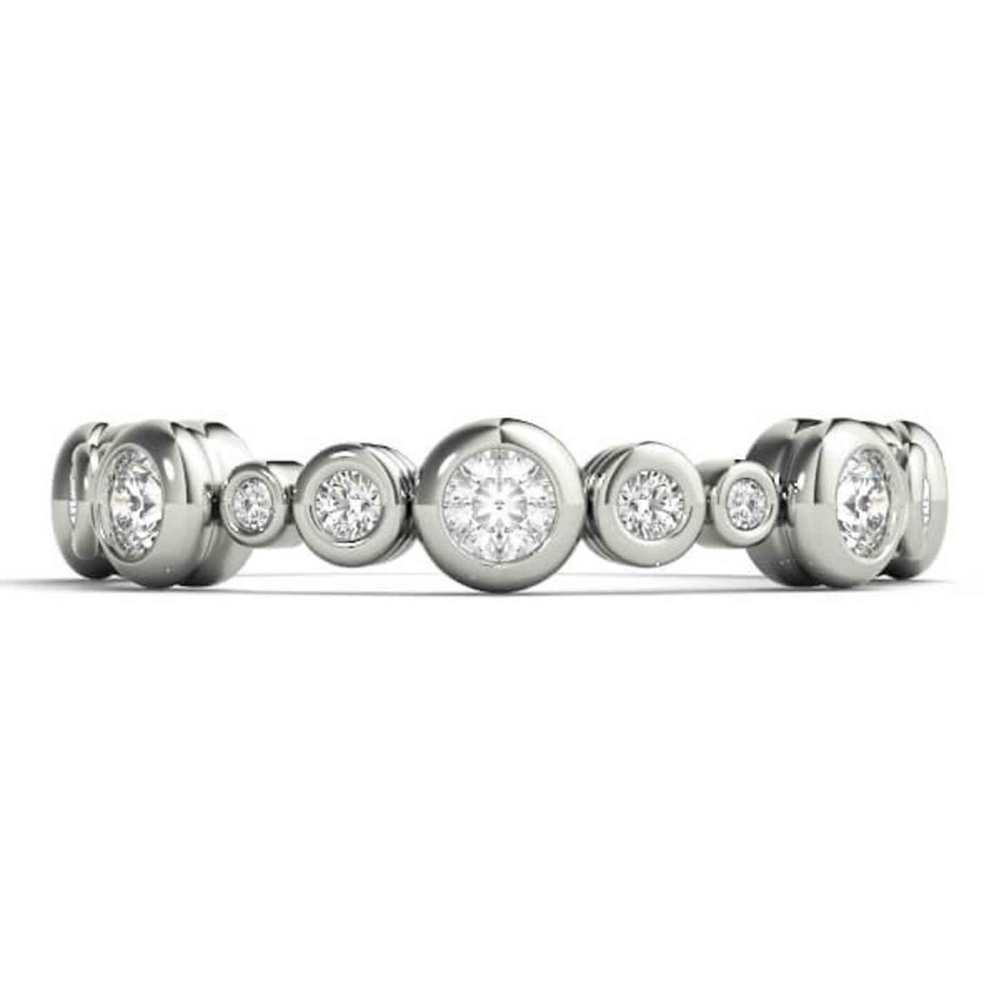 Introducing the Lumeniri Diamonds Multi-Bezel Ring. A cute and modern ring with 3 sizes of full-cut round brilliant lab diamonds set in round dome bezels.