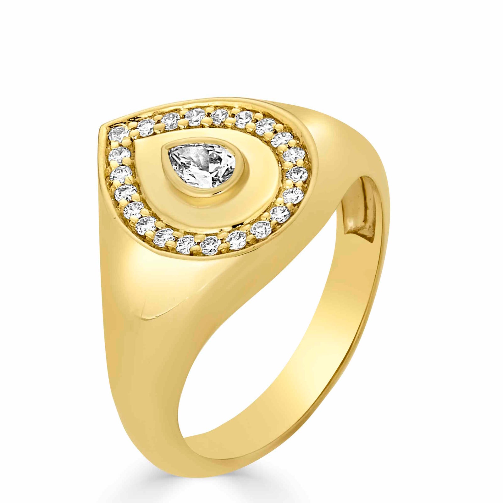 Introducing "Lito," a name of Greek origin meaning "simple" and "pure," beautifully captured in the 0.4ct Pear Halo Lab Grown Diamond Signet Ring in 14K Yellow Gold!