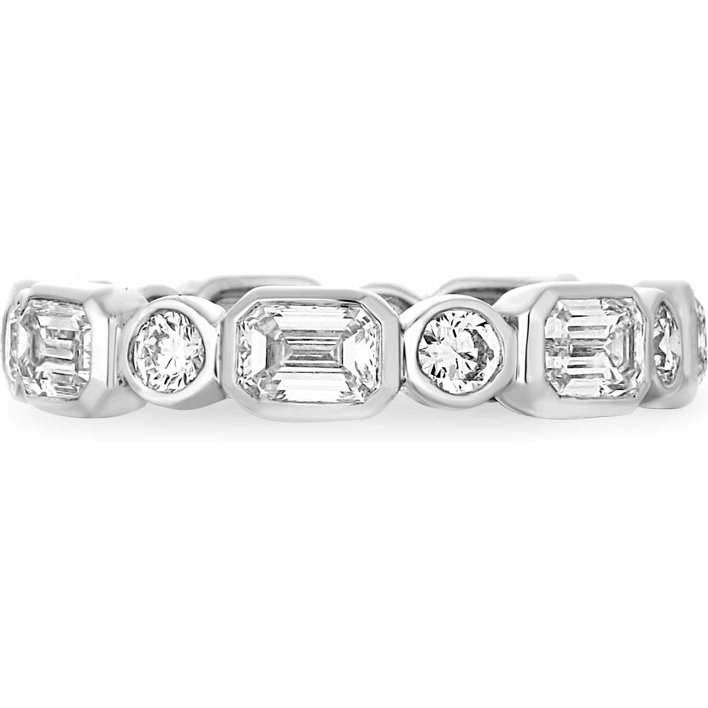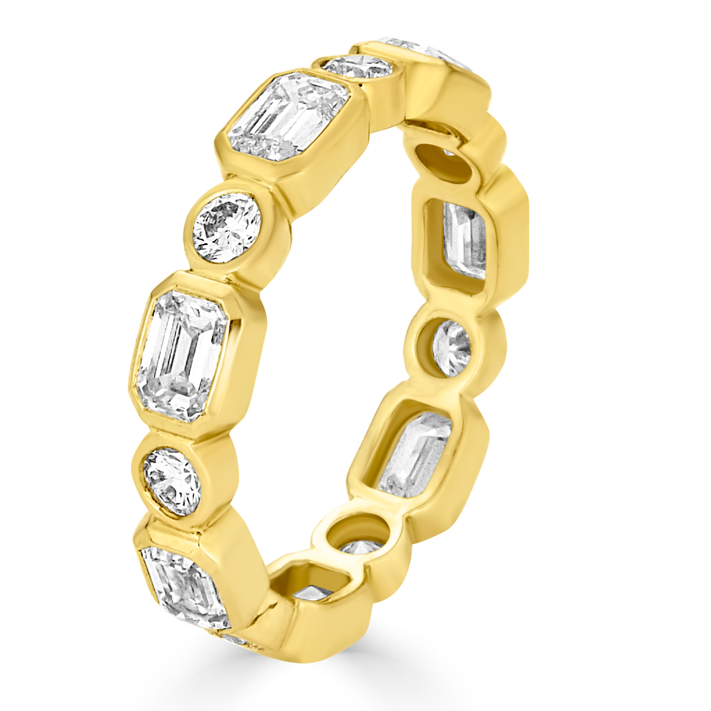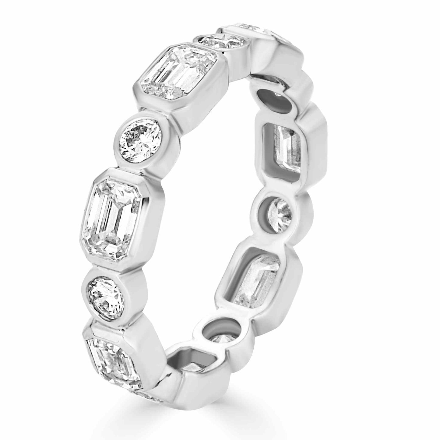 The Lucia Bezel Set Mixed Fancy Shape Eternity Band is an exquisite blend of elegance and modern design. Featuring an oval halo with a stunning arrangement of lab-grown diamonds, this piece is crafted to be a timeless addition to your collection. Each diamond is meticulously set in either pave or bezel settings, radiating sophistication from every angle.