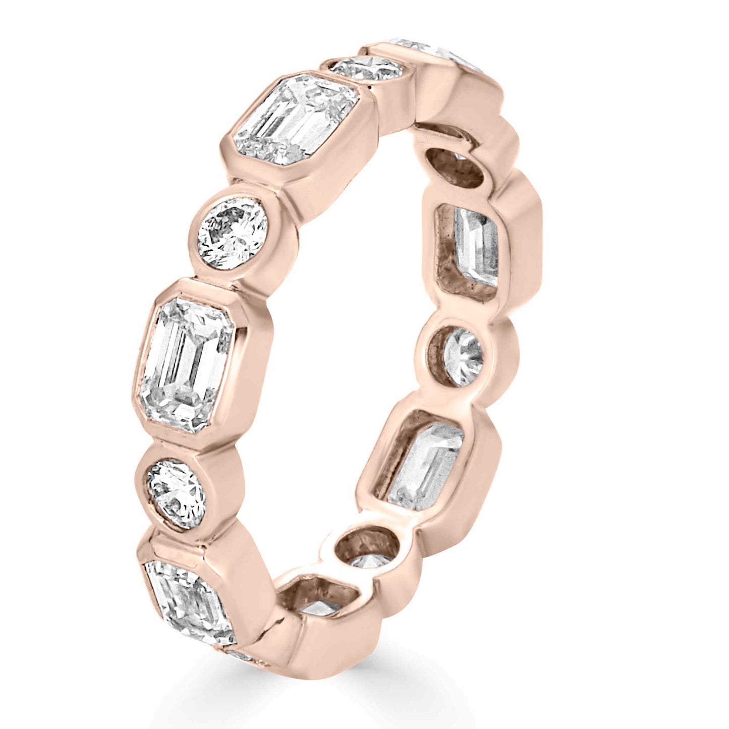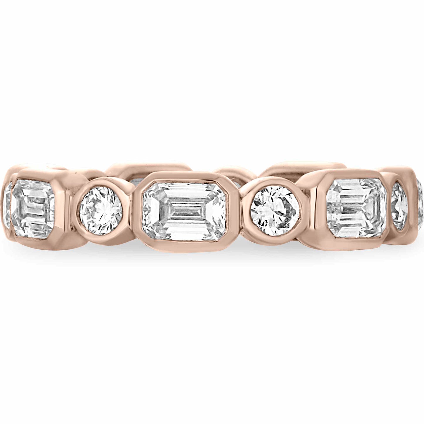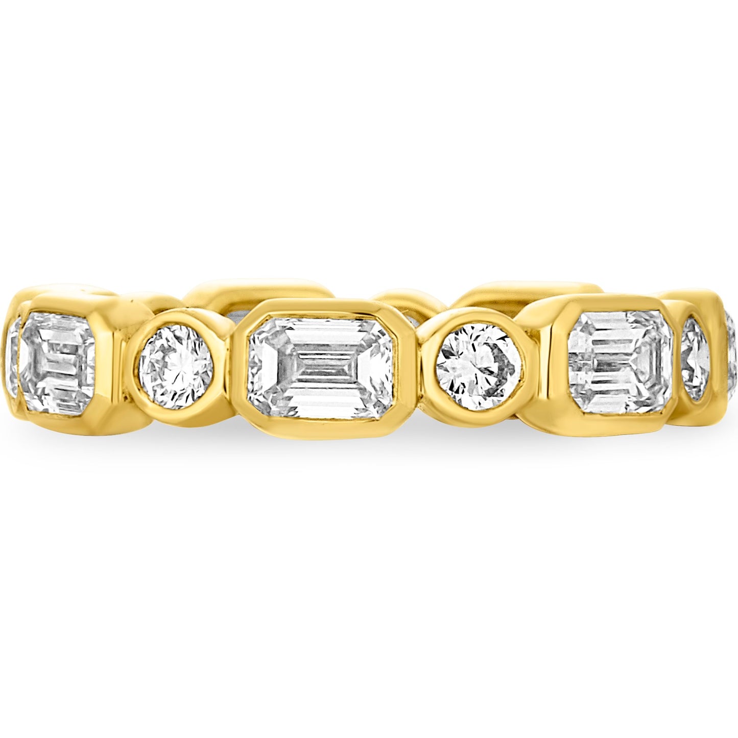 The Lucia Bezel Set Mixed Fancy Shape Eternity Band is an exquisite blend of elegance and modern design. Featuring an oval halo with a stunning arrangement of lab-grown diamonds, this piece is crafted to be a timeless addition to your collection. Each diamond is meticulously set in either pave or bezel settings, radiating sophistication from every angle.