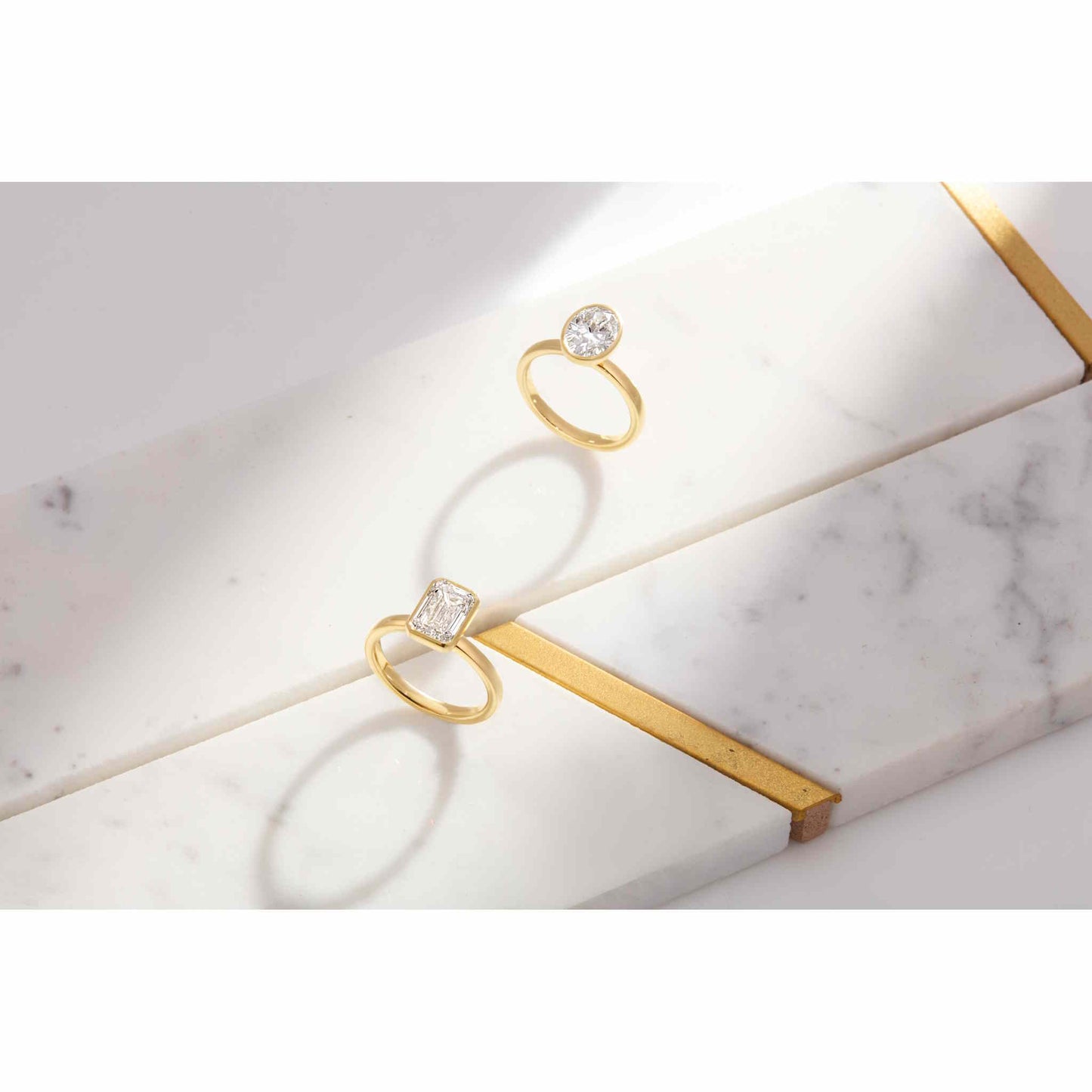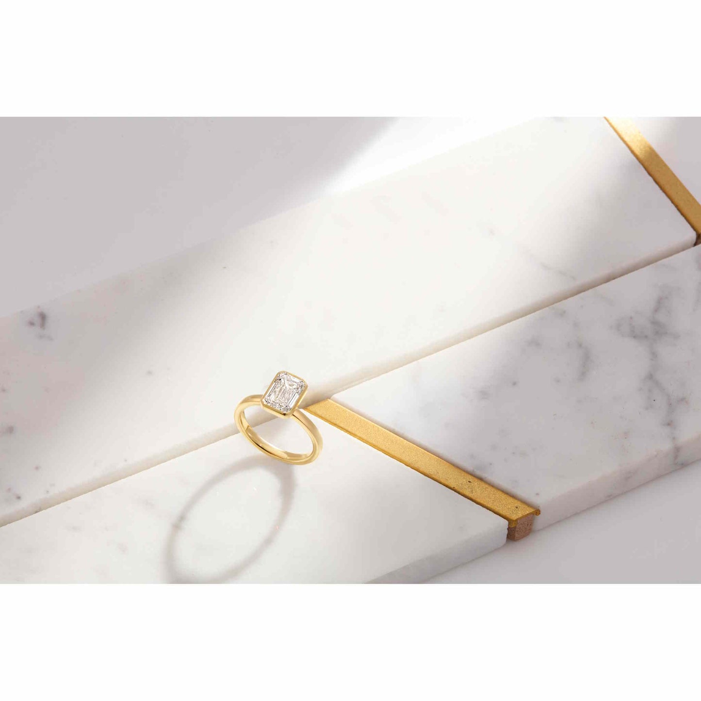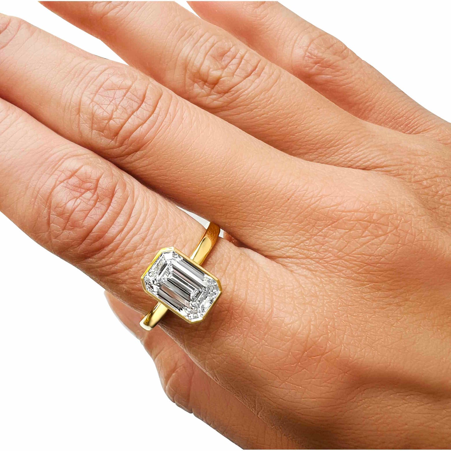 This 3.00 ct bezel-set emerald cut lab-grown diamond ring is crafted in solid 14K yellow gold and handmade in Los Angeles. With clean lines and a low-profile design, it’s a quietly bold piece you’ll wear on repeat. Made using eco-friendly, sustainable lab-grown diamonds—because modern luxury should reflect your values.