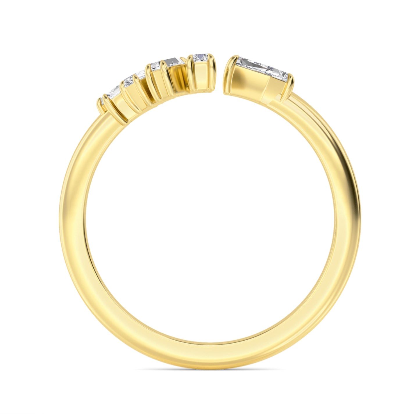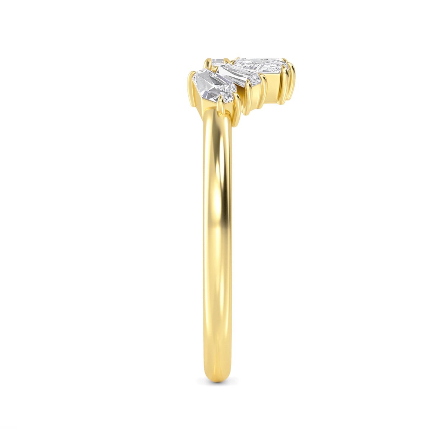 The Elara — a ring that’s all about clean lines and sharp sparkle. This wrap beauty showcases five baguette-cut lab-grown diamonds in E-F color and VS+ clarity, hugging your finger in a sleek, contemporary silhouette. Lightweight at just 1.8 g, it’s perfect for stacking, mixing, or letting it shine solo—Elara doesn’t do shy.