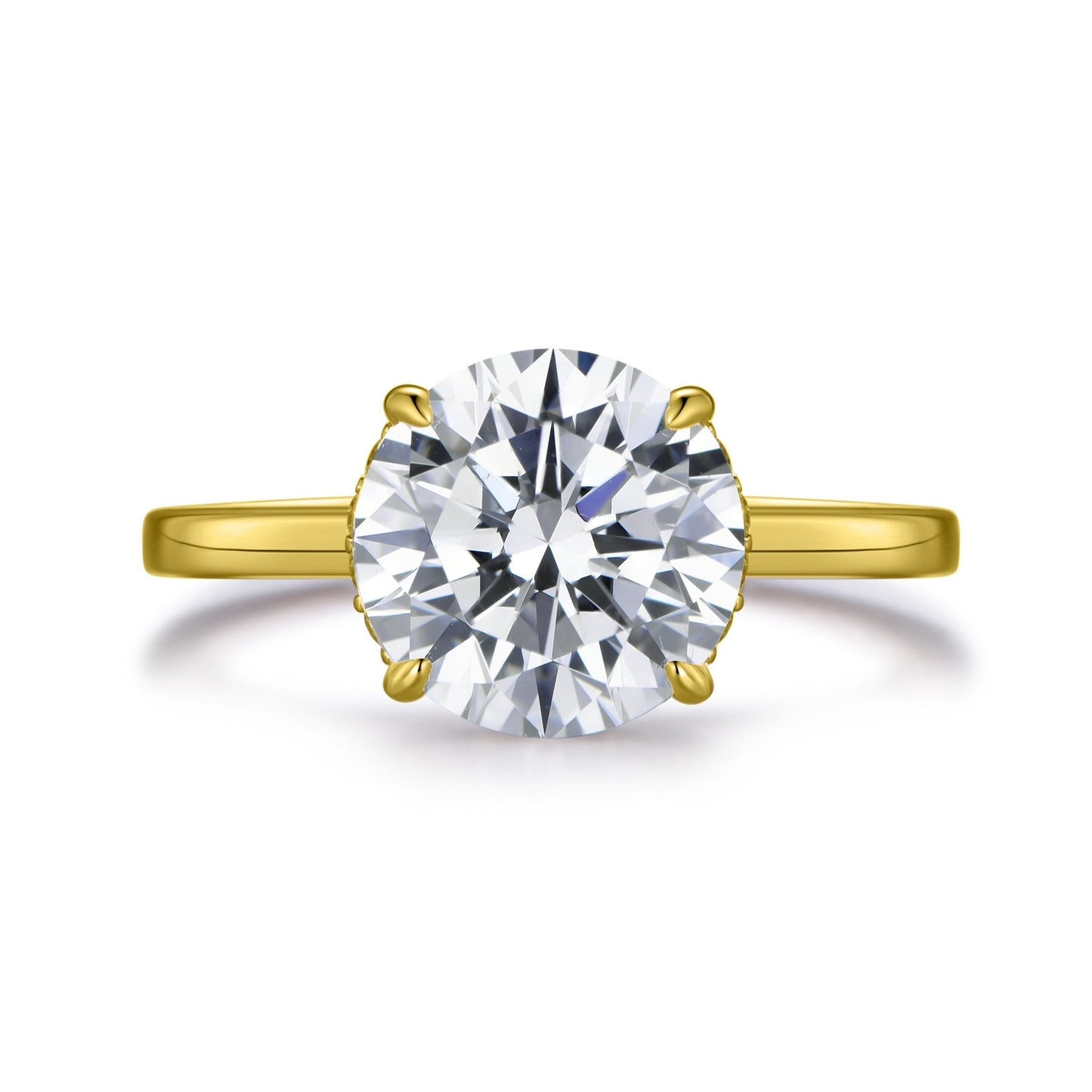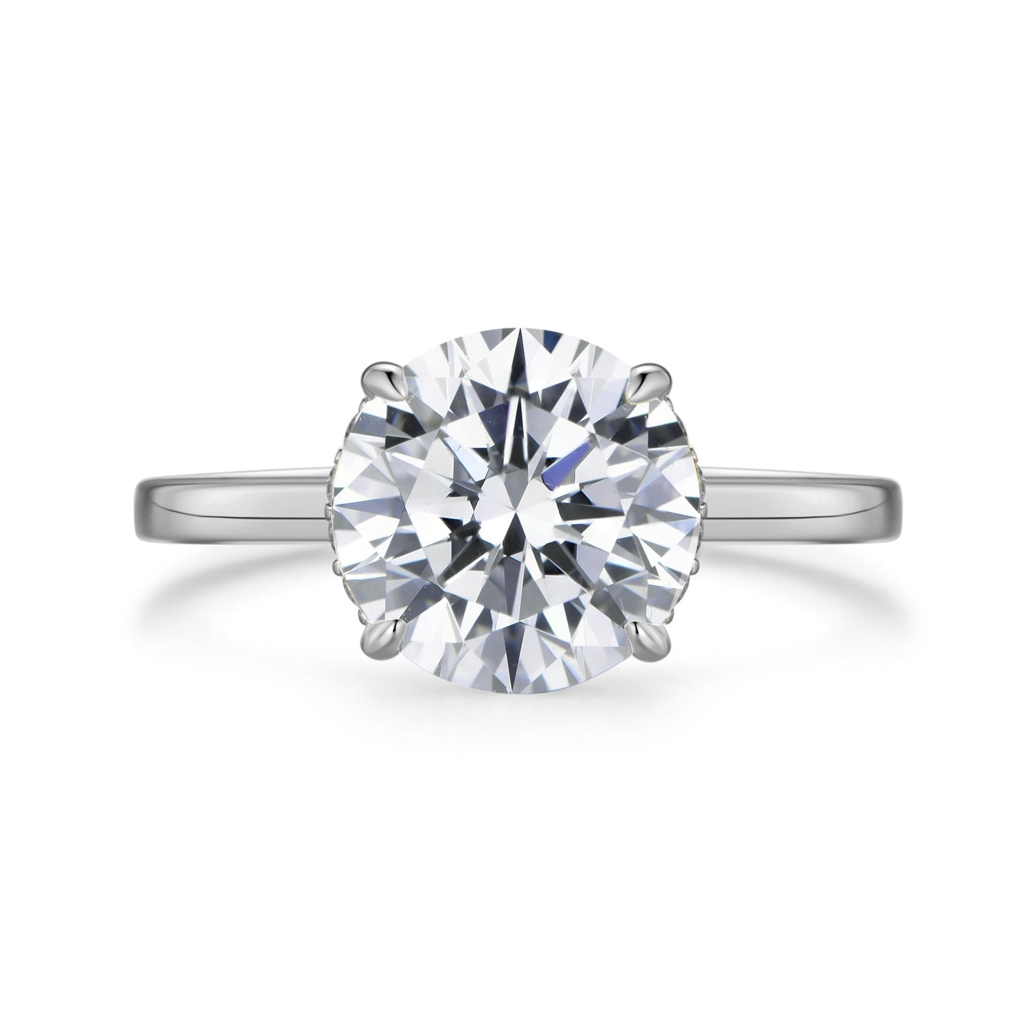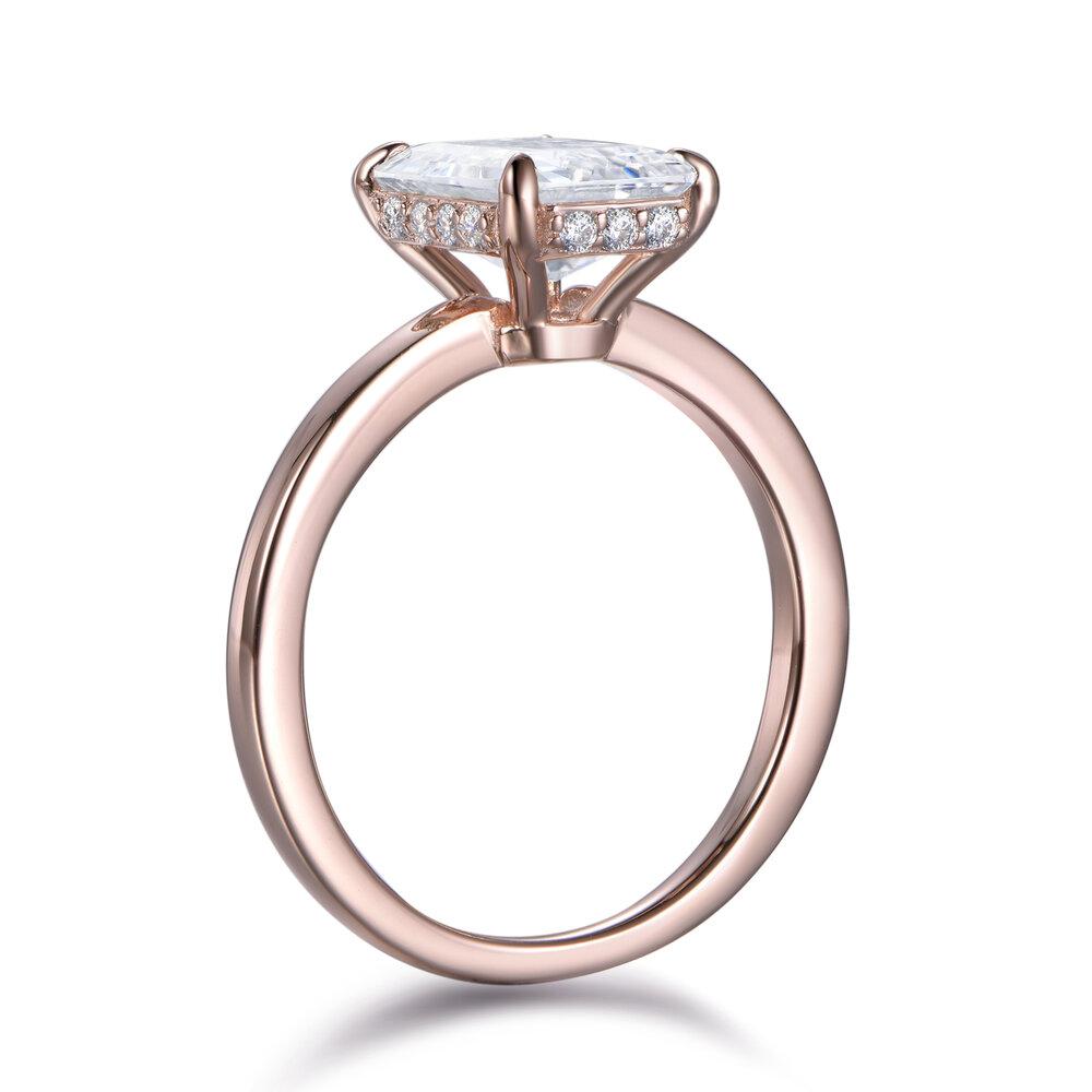 Introducing the Lumeniri Hidden Halo Solitaire Collection. A modern twist on a classic favourite. This hidden halo solitaire engagement ring features a magnificent central stone with discreetly hidden bead set lab diamonds that form a halo thus adding a discreet touch that is only visible to the wearer. Four handcrafted and ultra-precise "tiger claws" hug the center stone. Available in round cut, emerald, Asscher, Princess, cushion, radiant, oval cut, and pear shape, each diamond is carefully curated in laboratory conditions, while keeping true to the Labyrinth core values.
